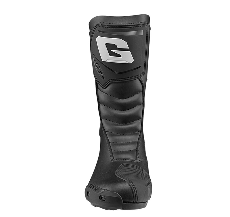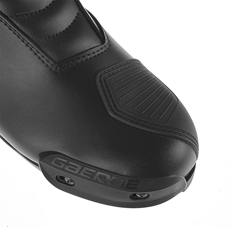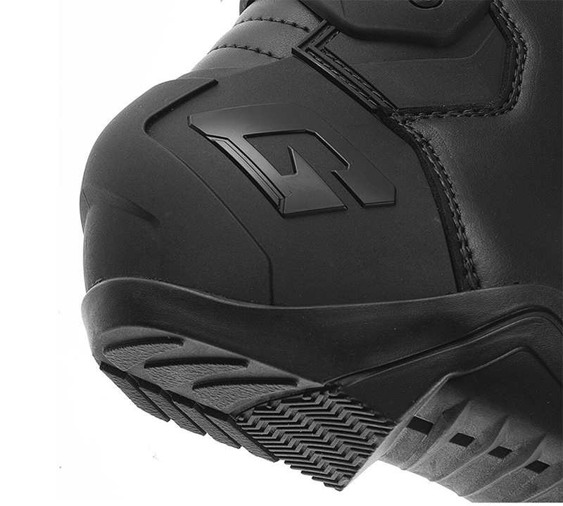 การป้องกันด้านหน้าที่ออกแบบตามหลักกายวิภาค ทำจาก PU ฉีดขึ้นรูป ให้การรองรับที่แข็งแรง ในขณะที่การ์ดป้องกันเกียร์ PU ช่วยเพิ่มความไวในการเปลี่ยนเกียร์และให้การป้องกันนิ้วเท้าเพิ่มเติม ระบบการปิดประกอบด้วยซิปและแผงปิดแบบตีนตุ๊กแก ช่วยให้ปรับขนาดได้ง่ายสำหรับผู้ขับขี่ทุกคน
